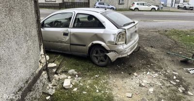 W Deszcznie nietrzeźwy 54-latek stracił panowanie nad oplem z przyczepą i uderzył w ogrodzenie oraz budynek. Nikt nie został ranny. Policja...